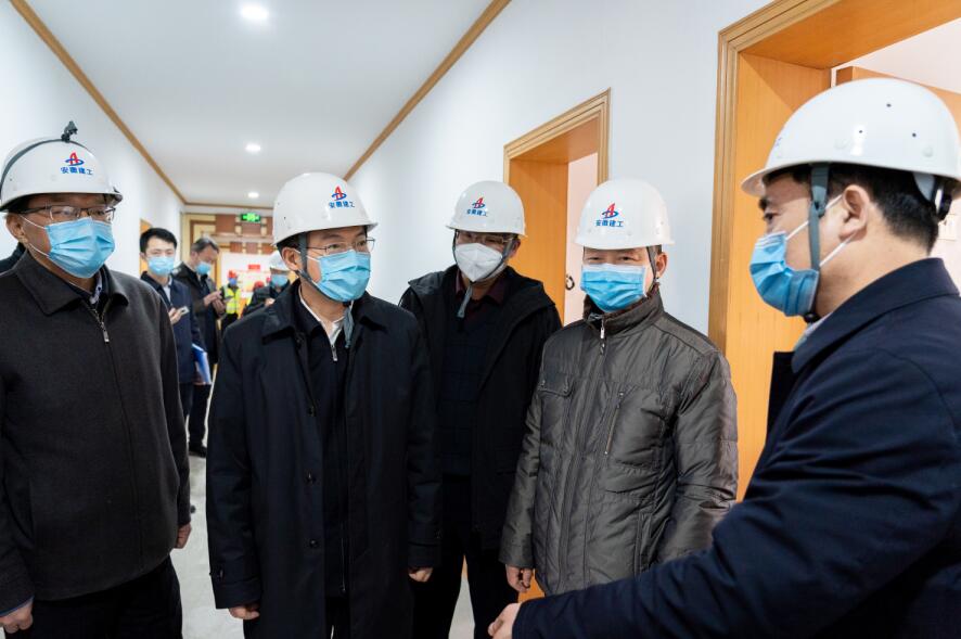 2月11日下午,省国资委党委书记、主任、省国资委疫情防控工作领导小组组长李中专程到巢湖市,实地调研安徽三建承建的巢湖半汤温泉疗养院抗疫医护人员疗养基地项目建设工作。省国资委党委委员、副主任叶传柏参加调研。建工控股党委书记、董事长赵时运,党委副书记、总经理刘家静陪同调研。