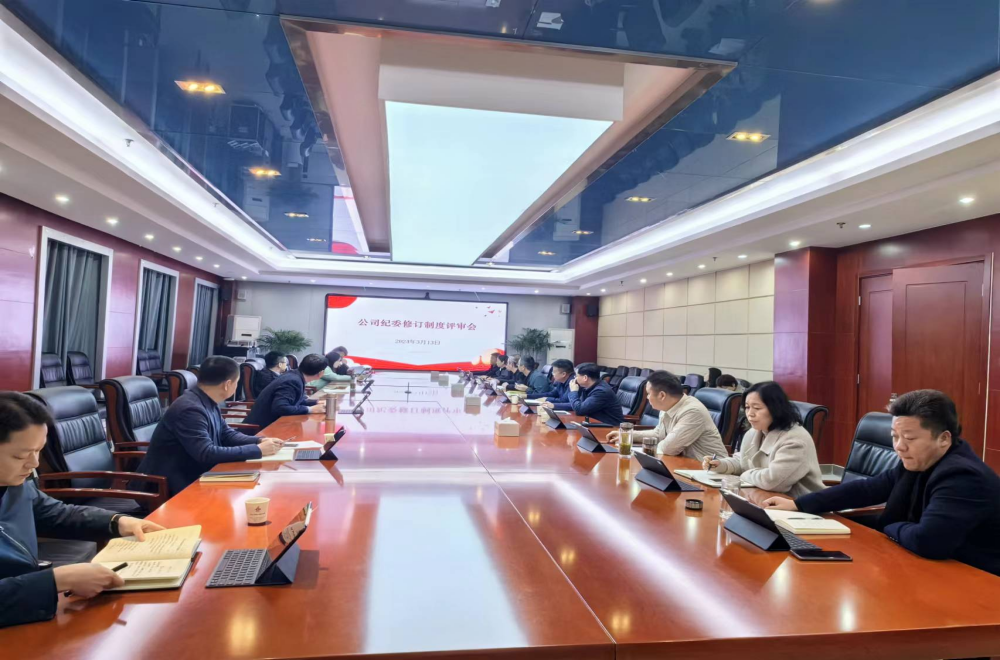 公司纪委组织召开修订制度评审会,对《安徽水利内部监督委员会工作规则》、《安徽水利职工违规行为处分规定》、《安徽水利内部招标监督办法》、《安徽水利职能监督责任清单》、《安徽水利纪委监督责任清单》等五项制度进行修订评审。
