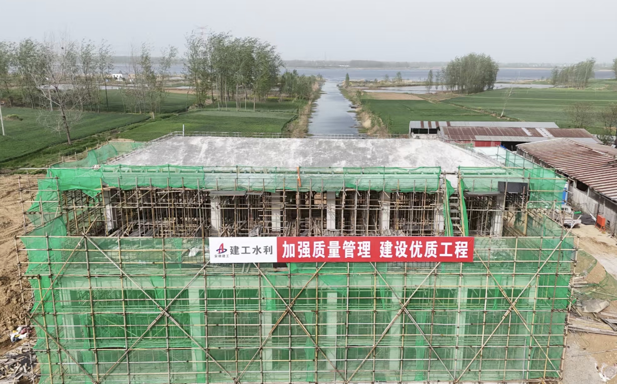 4月11日,怀洪新河灌区怀远段项目张集站主体结构顺利封顶,成为二期泵站工程中首个完成封顶的泵站。
