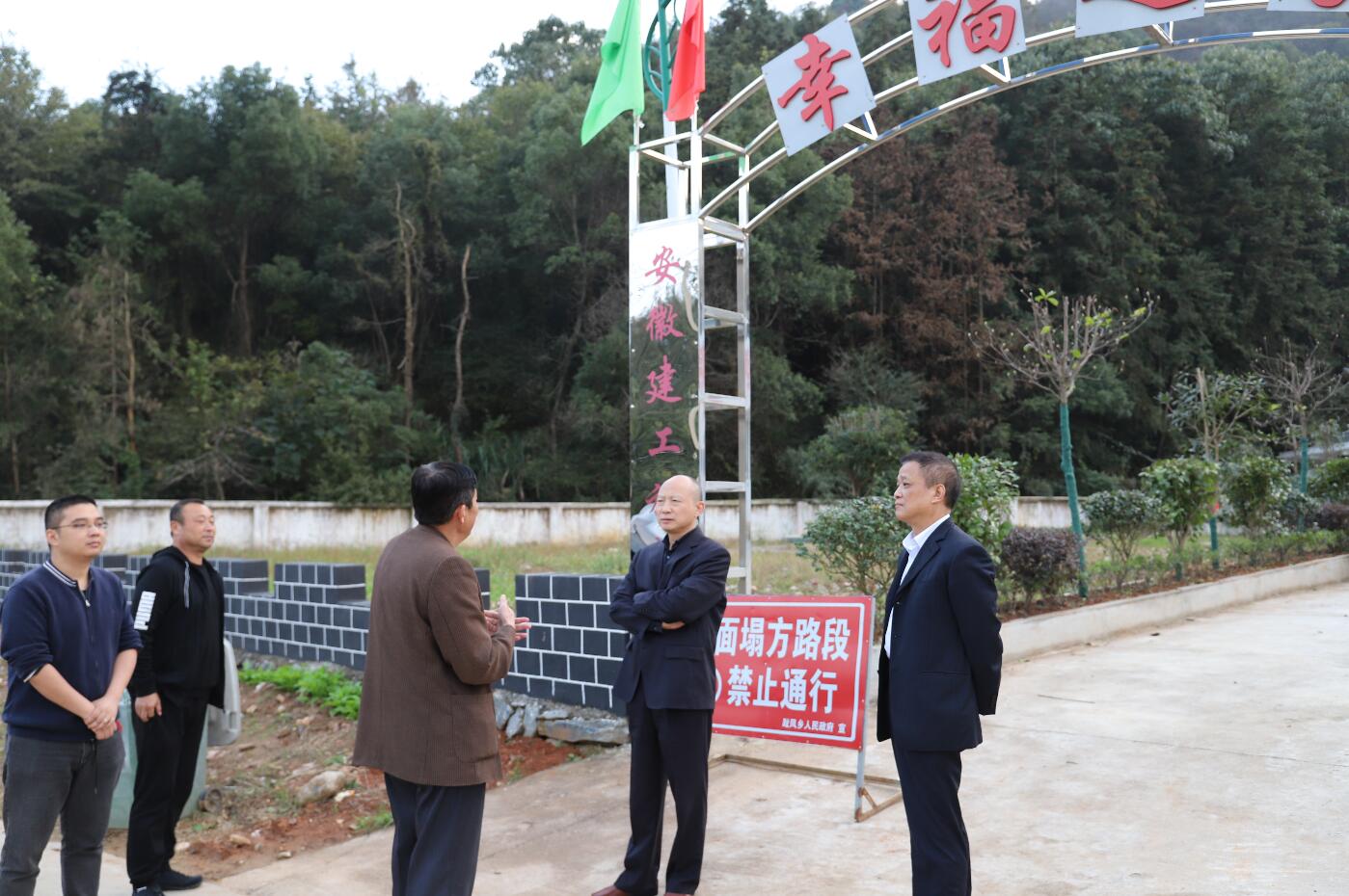 在趾凤村,赵时运一行考察了丑橘产业园、幸福之家安置房项目。在听取扶贫工作队队长、集团派驻趾凤村第一书记郑军同志的汇报后,他对驻村工作队取得的突出成绩表示充分肯定,对驻村工作队成员的辛勤工作表示亲切慰问,尤其是对驻村工作队员宮惊立在一线入党的事迹给予了高度赞扬。